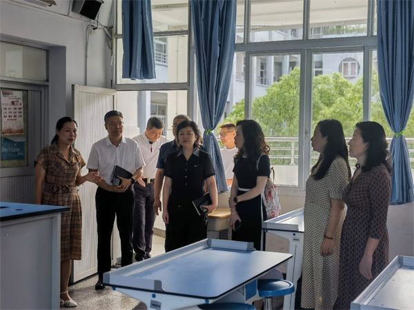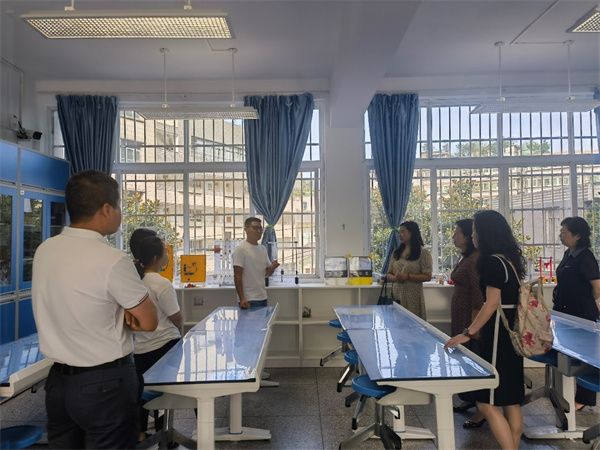 在贵阳市第八中学校领导的陪同下,项目组成员实地调研参观了贵阳市第八中学物理实验室建设情况,对物理实验教学、物理实验平台建设提出了改进意见和建议。