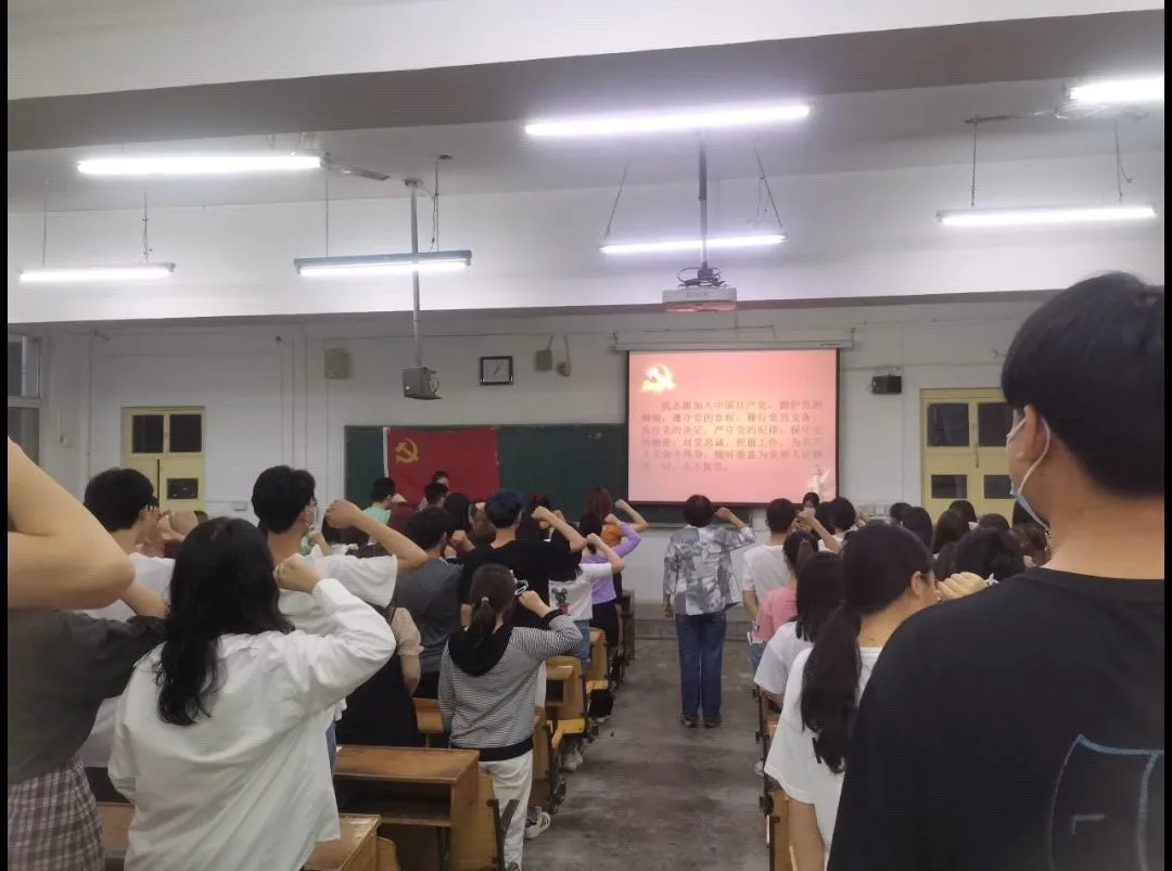 宣誓仪式是庄严神圣的一刻,短短的一百多字饱含着对党的承诺,也道出了学生们想要成为一名优秀的共产党员的心声。