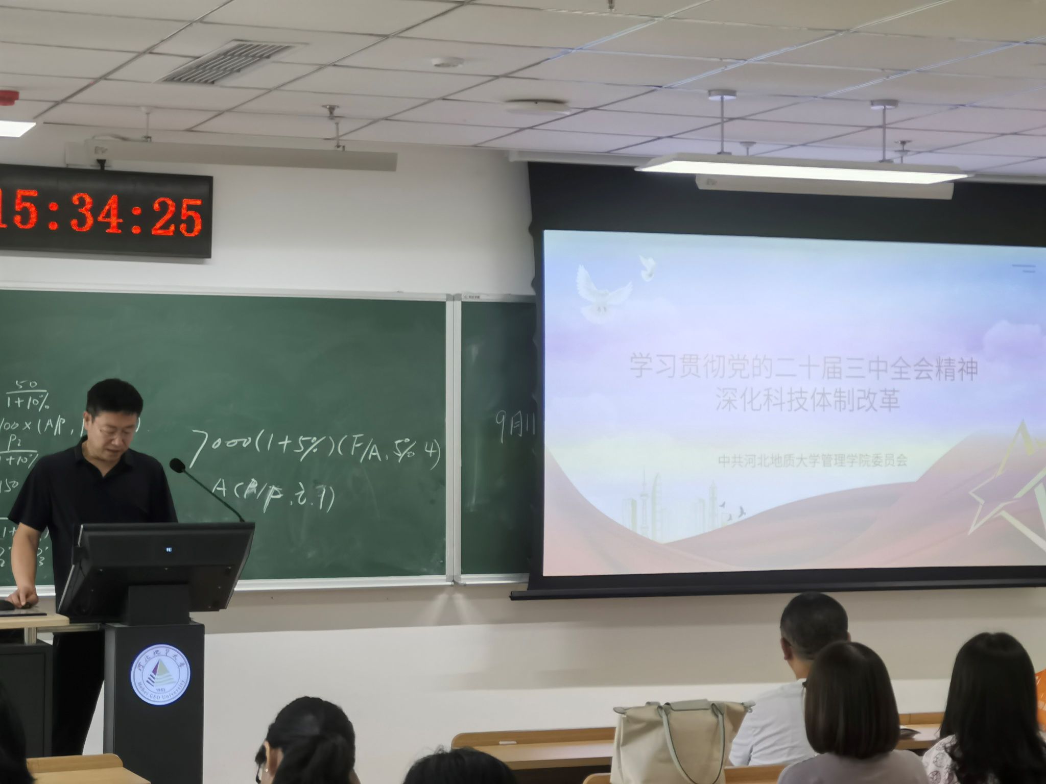 为深入学习贯彻党的二十届三中全会精神,深刻领会全会的重大意义,推动会议精神落地生根,引导广大党员将思想和行动统一到全会精神上来,2024年9月12日Beat365中文官方网站党委书记周雪以《学习贯彻党的二十届三中全会精神-深化科技体制改革》为题,做了专题党课讲座。
