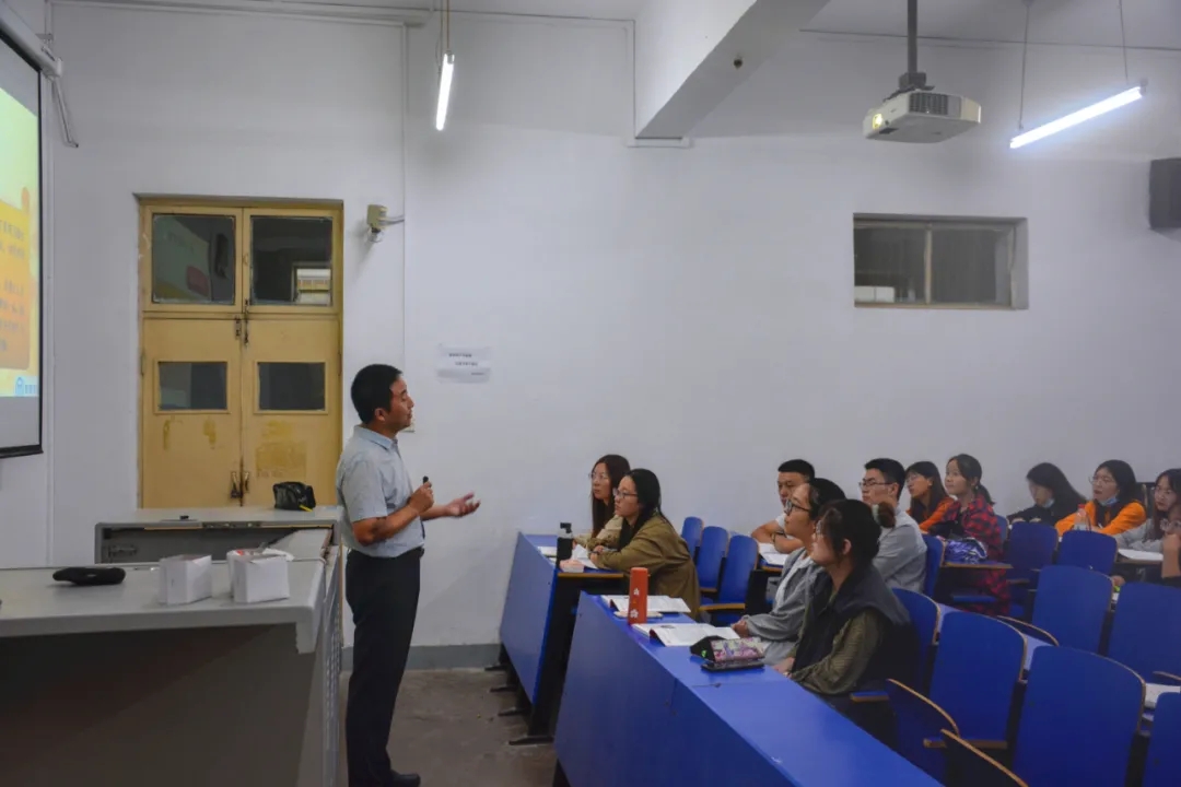 9月23日,学院于教二108举行了入党积极分子党课培训开班仪式。随后,Beat365中文官方网站党委书记袁志忠以《肩负使命,砥砺前行》为主题给同学们讲授了第一堂党课。袁书记指出,人生的方向比努力更重要,找准了人生的北极星,才能明确当代大学生的历史使命。同时,他通过分享习近平主席在纪念五四运动100周年大会的讲话,提出时代对当代大学生要树立远大理想、热爱伟大祖国、担当时代责任、勇于砥砺奋斗、练就过硬本领、锤炼品德修为的六点期望,激励大家完善自身能力,心怀祖国,情系群众。