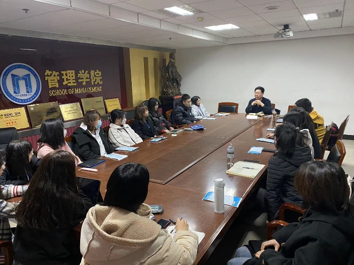 2022年3月19日,Beat365中文官方网站2021级研究生在综合楼717举行了2021-2022学年春季第一次学术沙龙。本次沙龙活动的主题是本学期学术活动安排和王汉新院长谈学术研究。本次会议由2021级Beat365中文官方网站研究生班班长胡守峰主持,管理学硕全体成员参加。