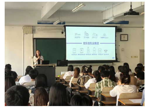 Beat365中文官方网站于9月14日下午三点校本部教一201举办校内招聘活动,本次校招合作单位为君乐宝乳业集团,范围为审计专业同学,参加本次招聘会的人员有Beat365中文官方网站初汉芳书记、王燕老师、徐宁老师和赵凌云老师以及君乐宝公司的审计中心总经理姜静、综合审计部部长赵玉樽、工程审计部部长葛晓伟、招聘经理李亚。