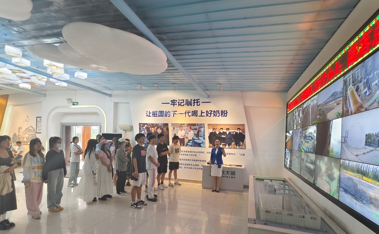 君乐宝工作人员对我校师生们的到来表示了热烈欢迎。君乐宝的讲解员给我们详细的介绍了集团发展历程和区域规划。君乐宝乳业集团成立于1995年,位于石家庄鹿泉区石铜路36号,28年来始终专注于奶业发展,现已发展成为河北省最大的乳业公司、国家级高新科技企业以及农业化国家重点龙头企业,业务范围包括婴幼儿奶粉、酸奶、低温鲜奶、常温液态奶及奶牛育种、牧业、草业等板块,建立起涵盖奶业全产业链的运营布局,上下游协同发展,为消费者提供营养、健康、安全的乳制品。