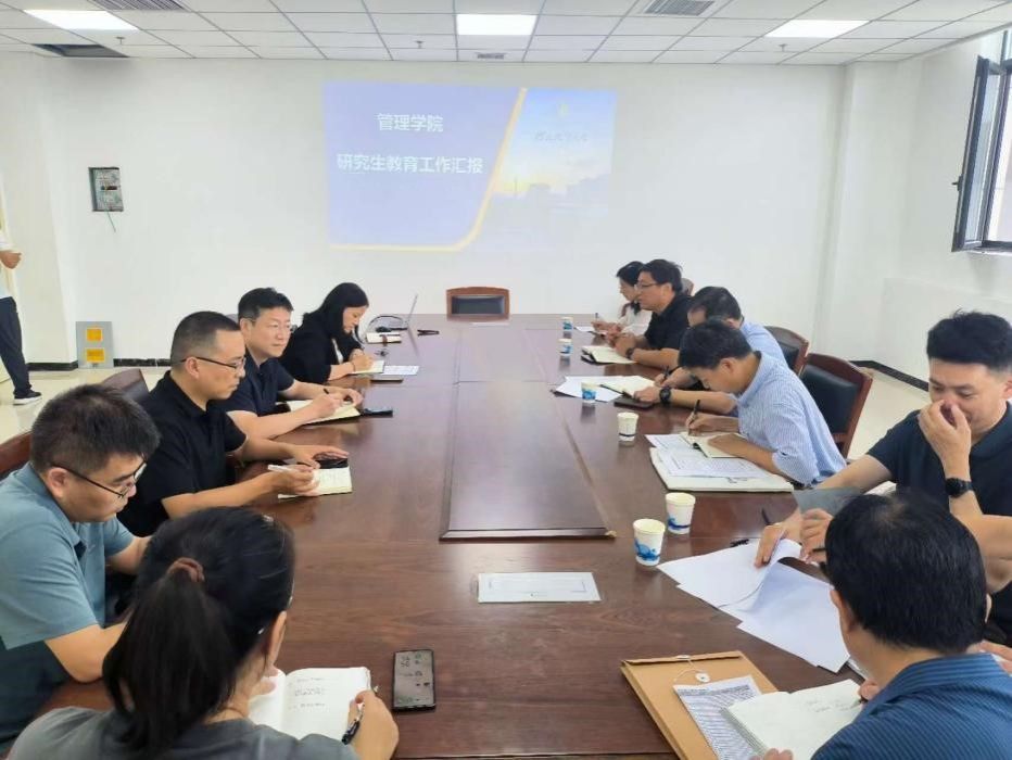 9月18日下午,副校长金胜、研究生学院院长曹南斌、副院长彭永芳和段亚敏、以及研究生学院各部门负责人一行到Beat365中文官方网站进行调研,重点考察研究生教育工作。Beat365中文官方网站白翠玲院长、周雪书记、梁毅、杨丽花、胡海川、安海岗等老师参加座谈会。
