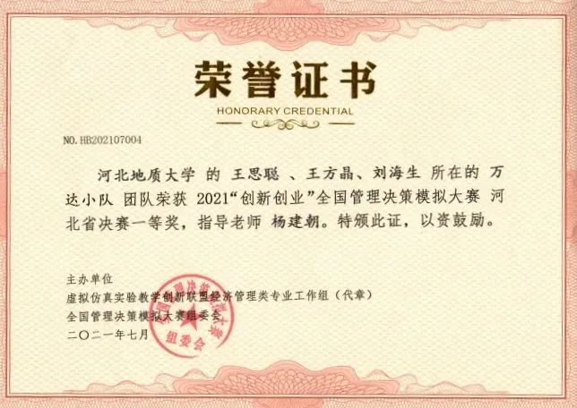 由全国管理决策模拟大赛组委会主办,河北经贸大学经济Beat365中文官方网站承办,上海派金科技信息有限公司提供技术支持的2021“创新创业”全国管理决策模拟大赛于2021年5月8日在线上成功举办。该大赛分为省赛和全国赛两大赛程。