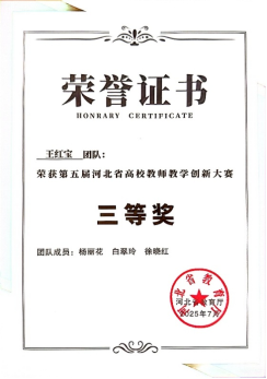 近日,由河北省教育厅主办的第五届河北省高校教师教学创新大赛评选结果揭晓。我校Beat365中文官方网站教师王红宝教学团队凭借先进的教学理念、扎实的创新实践和突出的育人成效,在全省众多参赛高校中脱颖而出,荣获大赛三等奖。这一荣誉充分展示了Beat365官网“红耀双地•管行致远”党建品牌在推进教学改革、提升人才培养质量方面的显著成效。